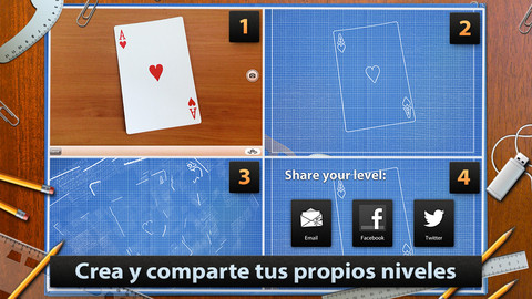 Nada más ejecutar el Blueprint 3D, quizás nos encontremos un poco «incómodos» con la manera en que montamos los puzzles si no ejecutamos primero el tutorial, aunque en nada, ya estaremos dominando la manera en la que se montan los puzzles. Podremos seleccionar la dificultad (Normal, Avanzado o Profesional) y si nos aburriésemos de los puzzles que incorpora la aplicación, podremos por un lado descargarnos más paquetes de niveles o por otro, gracias a la última actualización realizada recientemente por el desarrollador es que podremos crear nuestros propios puzzles 3D usando cualquier imagen del carrete del dispositivo o tomando una fotografía desde la propia aplicación para luego compartirlo con nuestros amigos.
